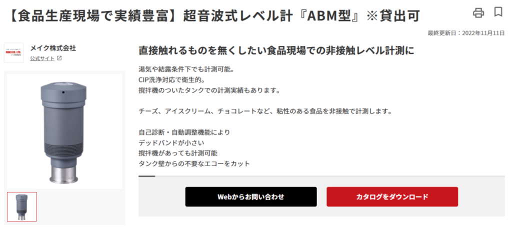 <食品生産現場で実績豊富>超音波式レベル計『ABM型』