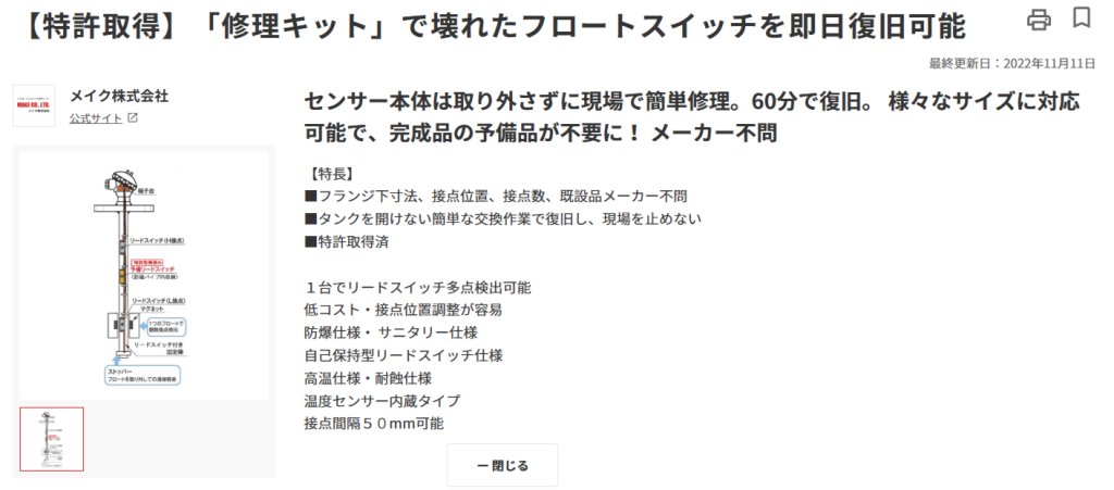 「修理キット」で壊れたフロートスイッチを即日復旧可能【特許取得済】