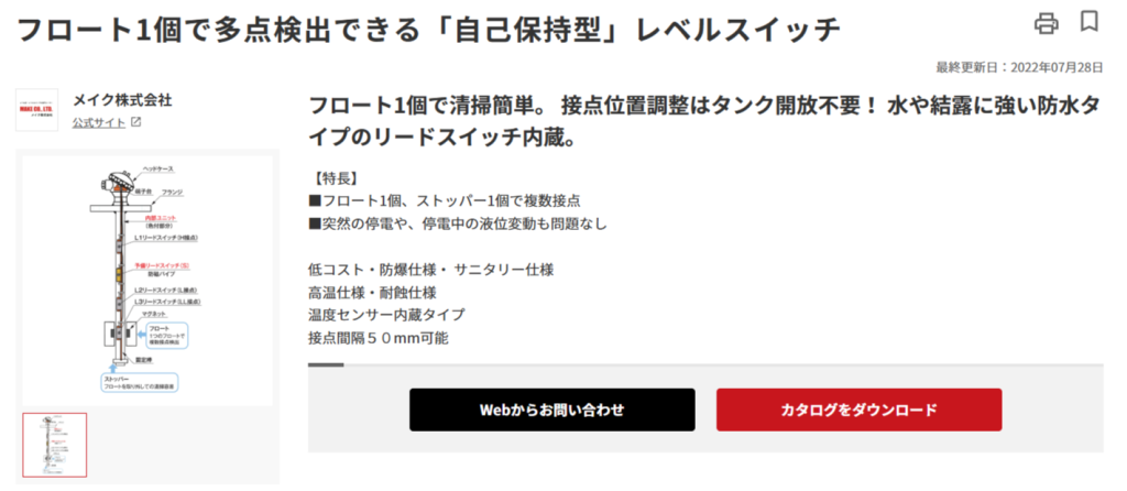 2. フロート1個で多点検出できる「自己保持型」レベルスイッチ