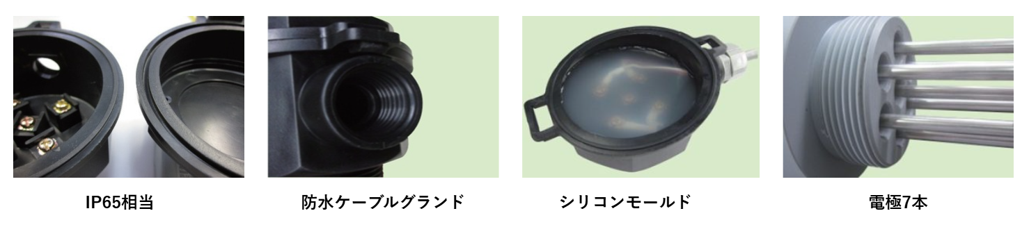 電極式のトラブルで夜中に呼び出される心配なし!大雨が降っても安心!水に強い端子箱で急なトラブルから現場を守る電極式レベルスイッチ。