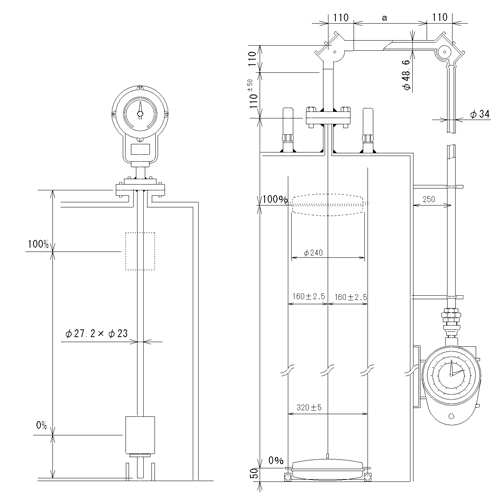水、酸/アルカリ液体、原料液体、溶剤等、危険物液体のタンク内の液高を現場指示及び遠隔指示